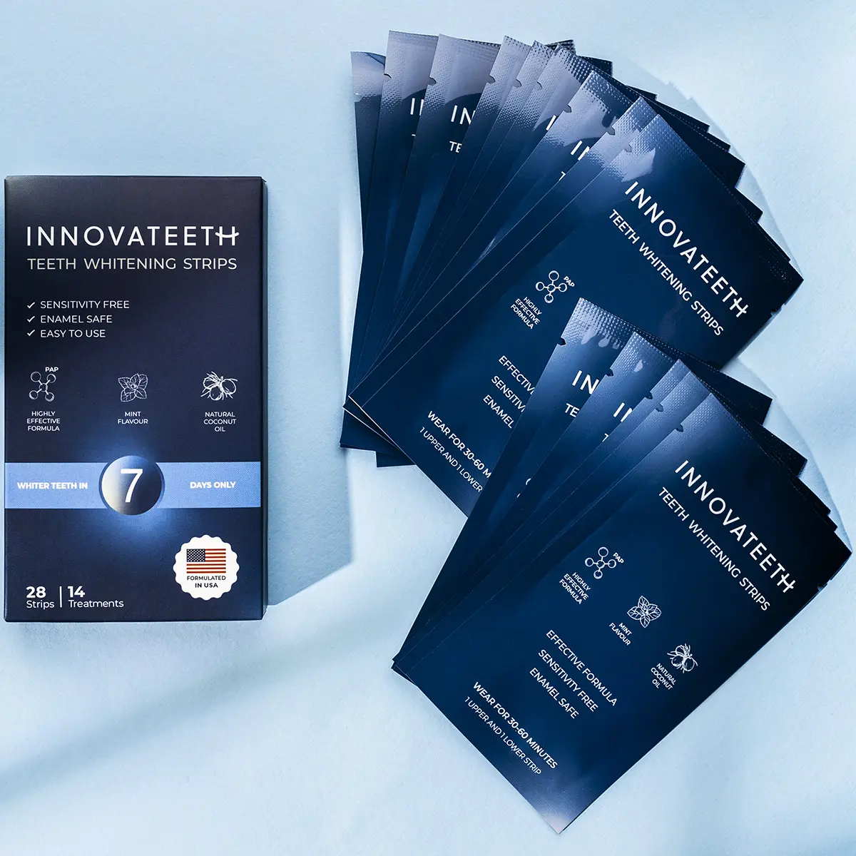 INNOVATEETH bieliace pásky sú veľmi účinné vďaka svojmu zloženiu. Doprajte si reprezentatívny úsmev, ktorý nikto neprehliadne!