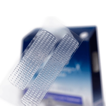 Dva pásky pre lepší výsledok Kratší pásik nalepte na dolné zuby. Dlhší pásik je určený pre horné zuby.