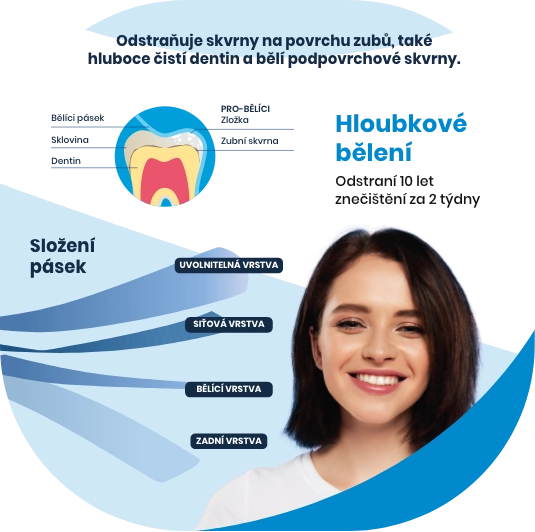 Pre účinné výsledky používa rovnakú bieliacu zložku ako zubní lekári.