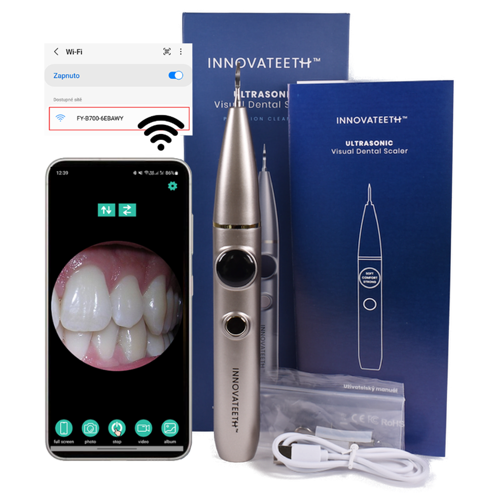 Odstraňovač zubného kameňa dokáže priamo porozumieť zdraviu a kondícii vašich zubov. Pomocou mobilnej aplikácie a pripojenia k WiFi potom následne nastavíte pozíciu tak, aby bolo jeho použitie čo najefektívnejšie. Pre vaše ľahké a intuitívne čistenie je prístroj vybavený aj silnou a praktickou kamerou.